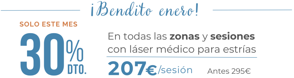 De forma orientativa, el precio del tratamiento de estrías suele situarse alrededor de 550 € por un bono de 3 sesiones en una zona. Tras la valoración médica personalizada, se establece el protocolo más adecuado según el tipo de estría y el estado de la piel.